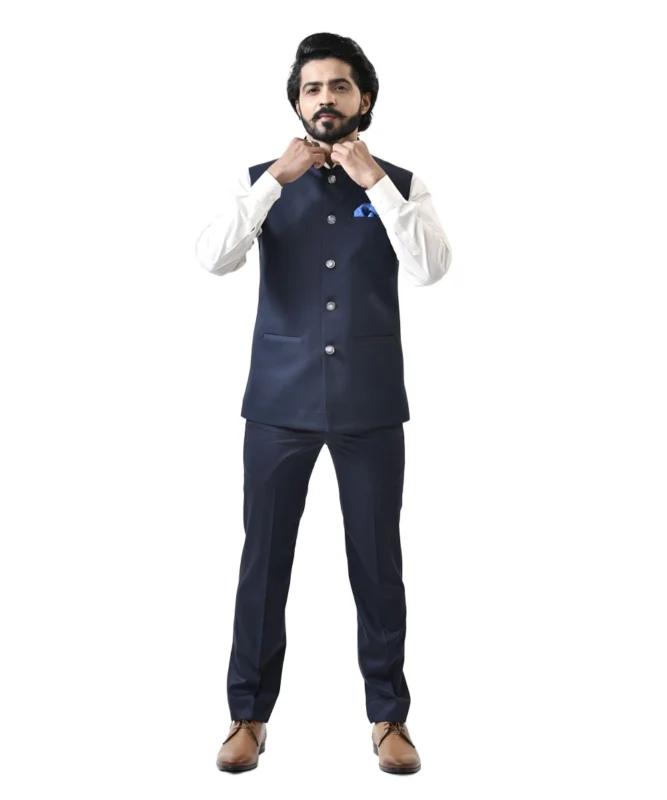 ₹3,500.00Navy Blue Bundi with White Shirt and Navy Blue Pant – Combo Set