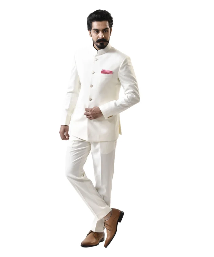 Cream Bandhgala with Navy Blue Pant – Combo Set