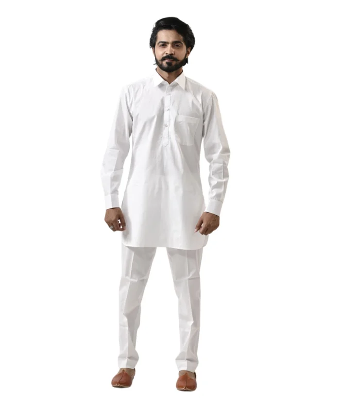 White Kurta with White Pant – Combo Set