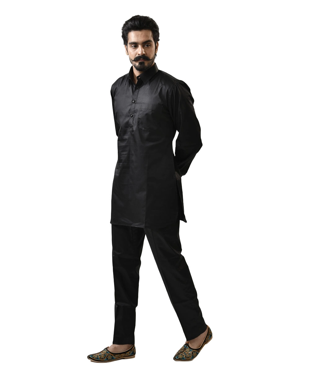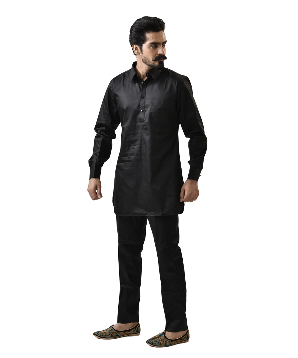 Bold, sleek, and versatile — Deepee’s Pret All-Black Kameez + Pant Combo is the modern man’s essential.