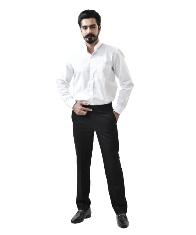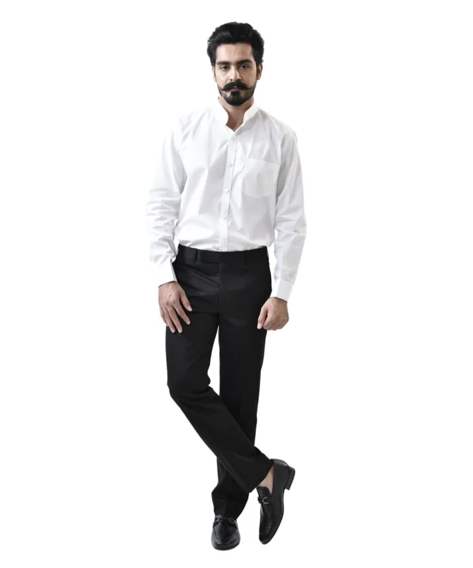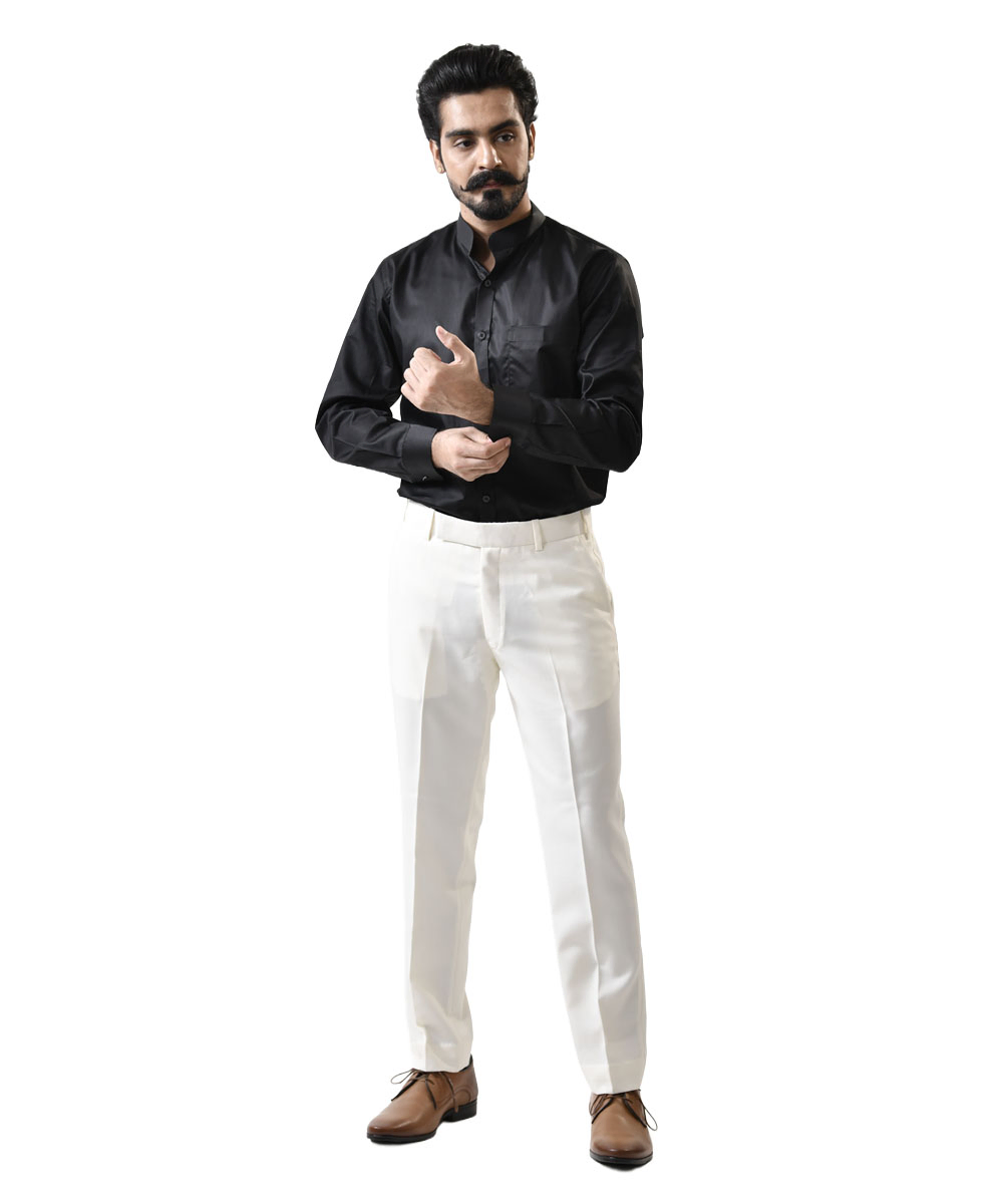 Black Mandarin Collar Shirt with White Pant – Combo Set