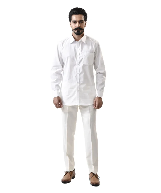 The mandarin/stand collar shirt adds a modern, minimalist edge to the timeless black-and-white pairing. Crafted in 100% premium cotton, this set balances breathable comfort with refined tailoring, making it ideal for both formal events and stylish everyday wear.