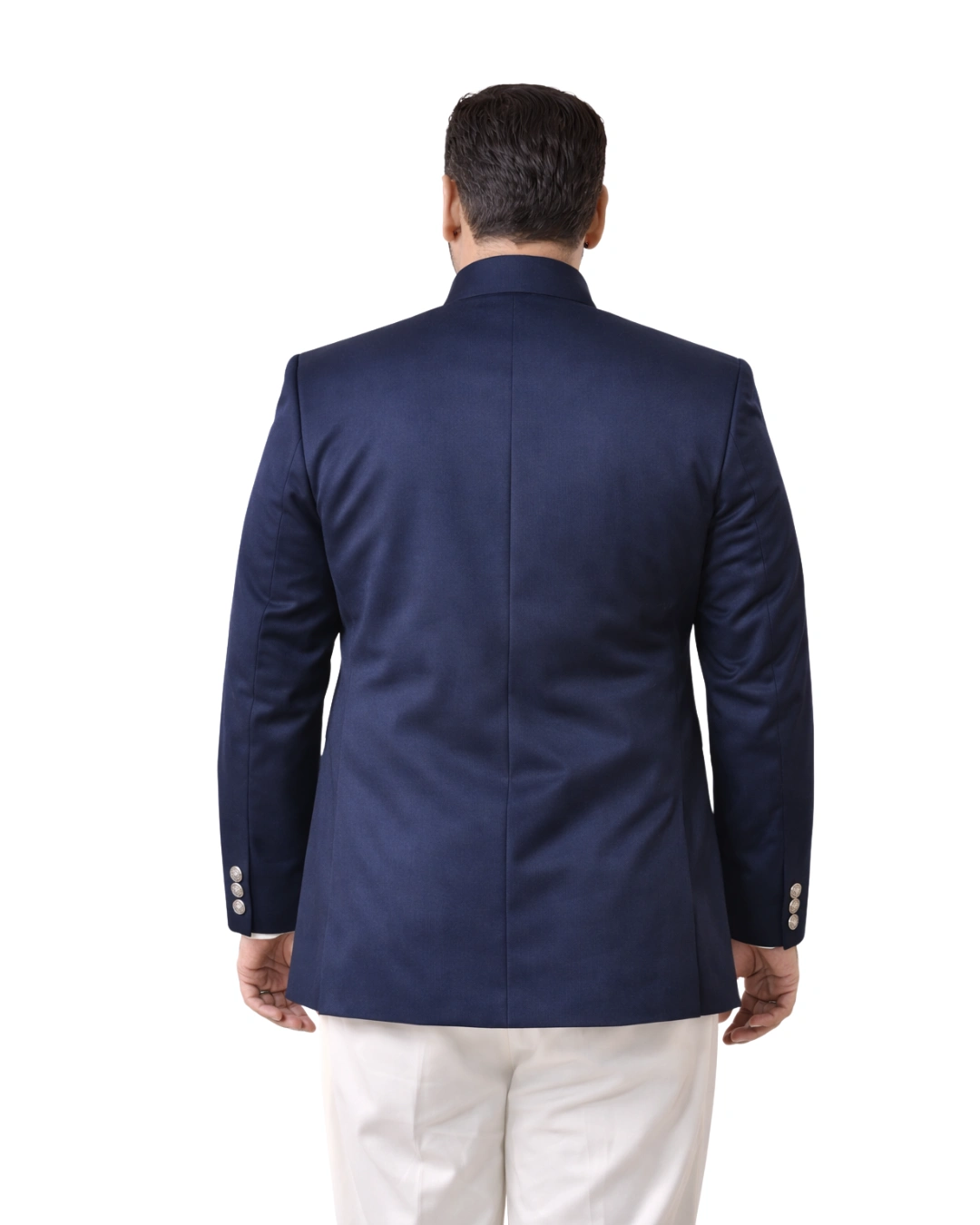Classic navy blue bandhgala designed for Indian men with tummy. Structured shoulders, relaxed stomach fit, and clean button alignment — ideal for weddings, receptions, and formal occasions.