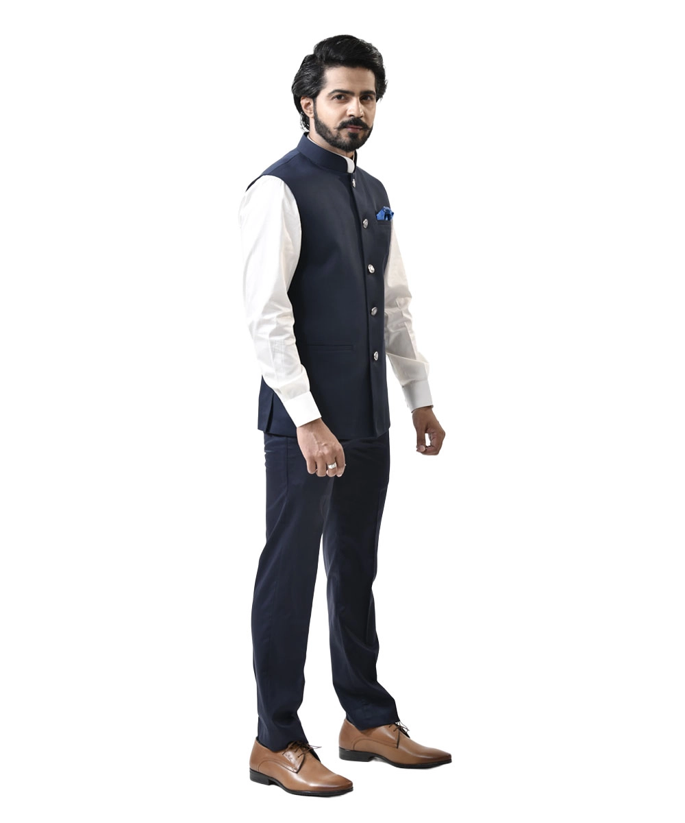 - Product Color: Navy Blue Bundi | White Shirt | Navy Blue Pant