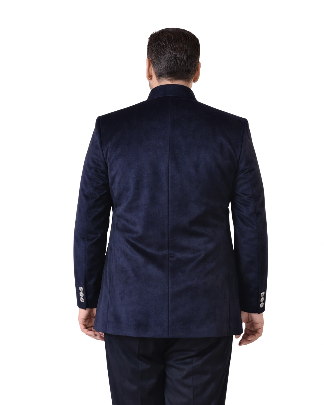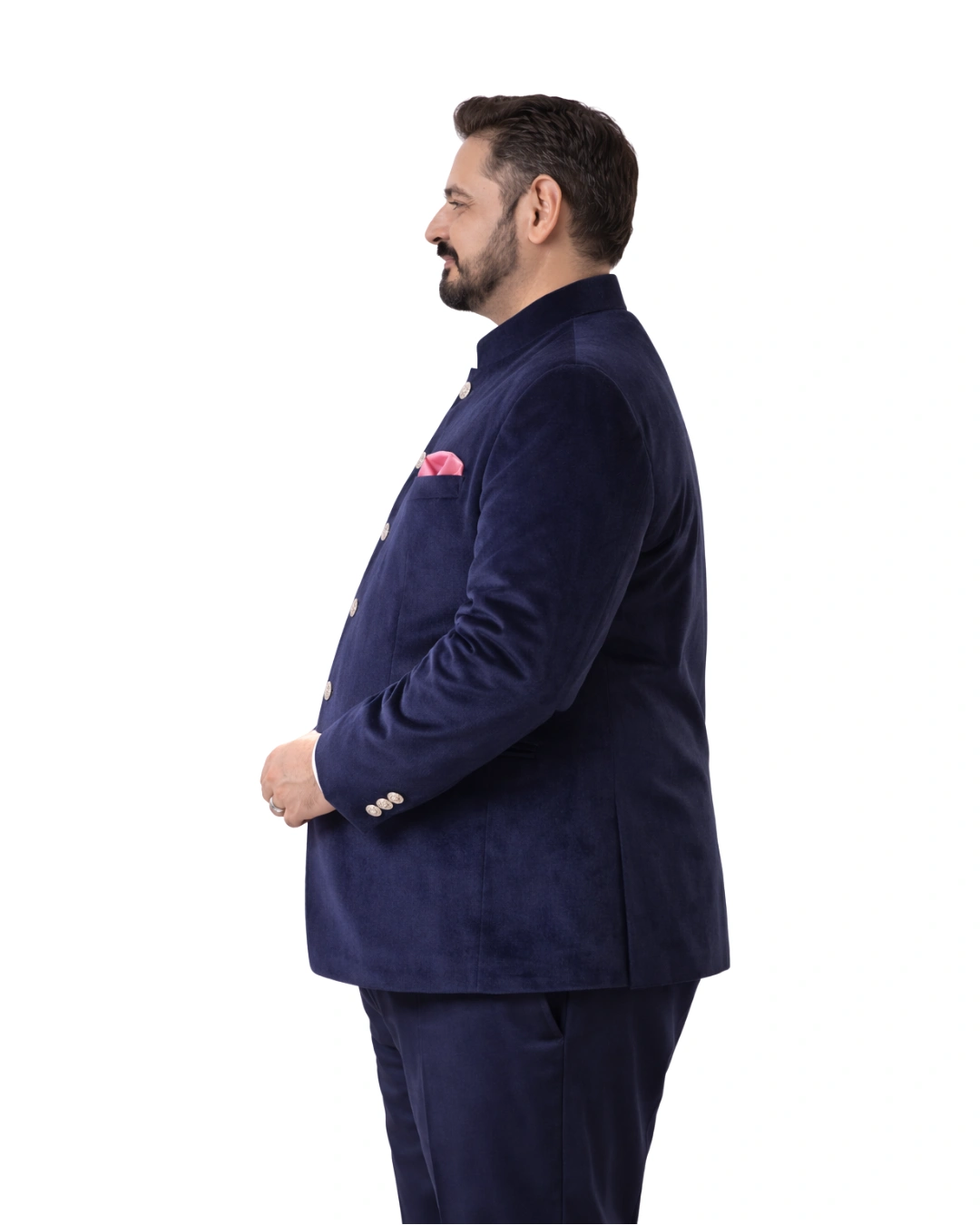 Navy Blue Velvet Bandhgala for Men Belly Comfort Fit