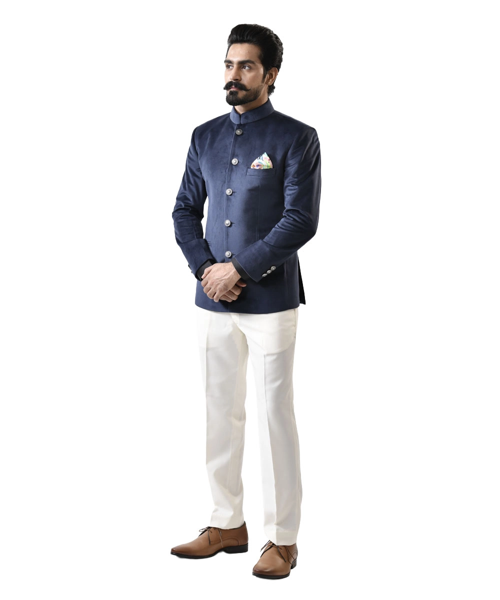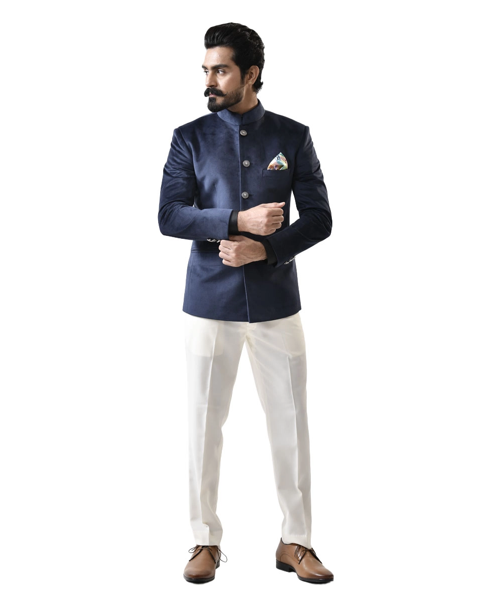 - Product Color: Navy Blue Velvet Bandhgala | White Pant