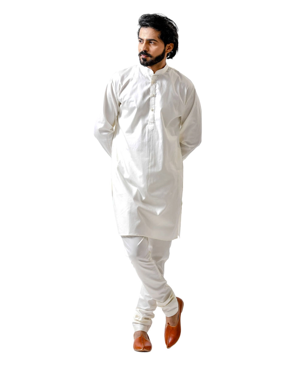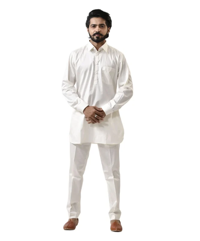 White Kurta with White Pajama – Combo Set