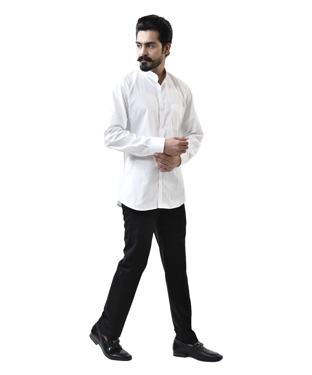 White Mandarin Collar Shirt with Black Pant – Combo Set