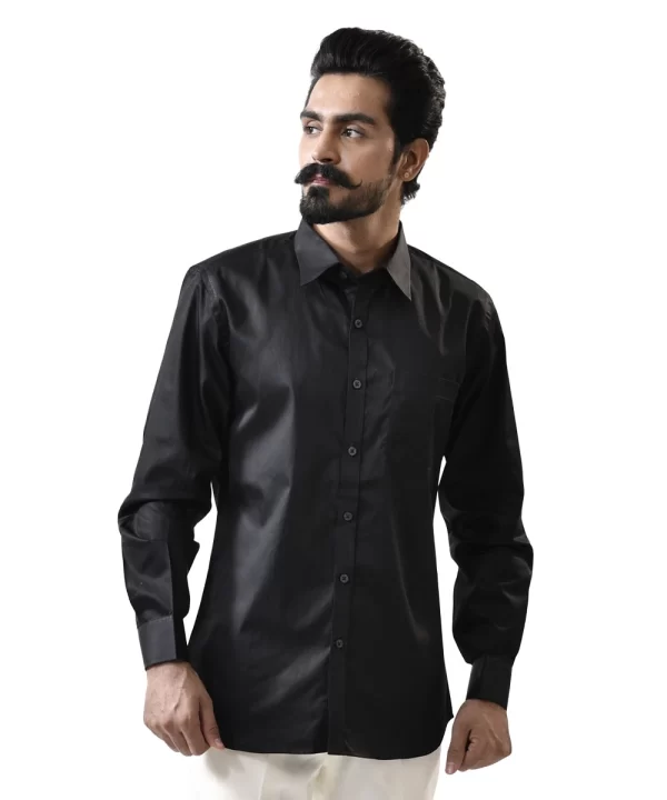 Black Cotton Shirt with Spread Collar