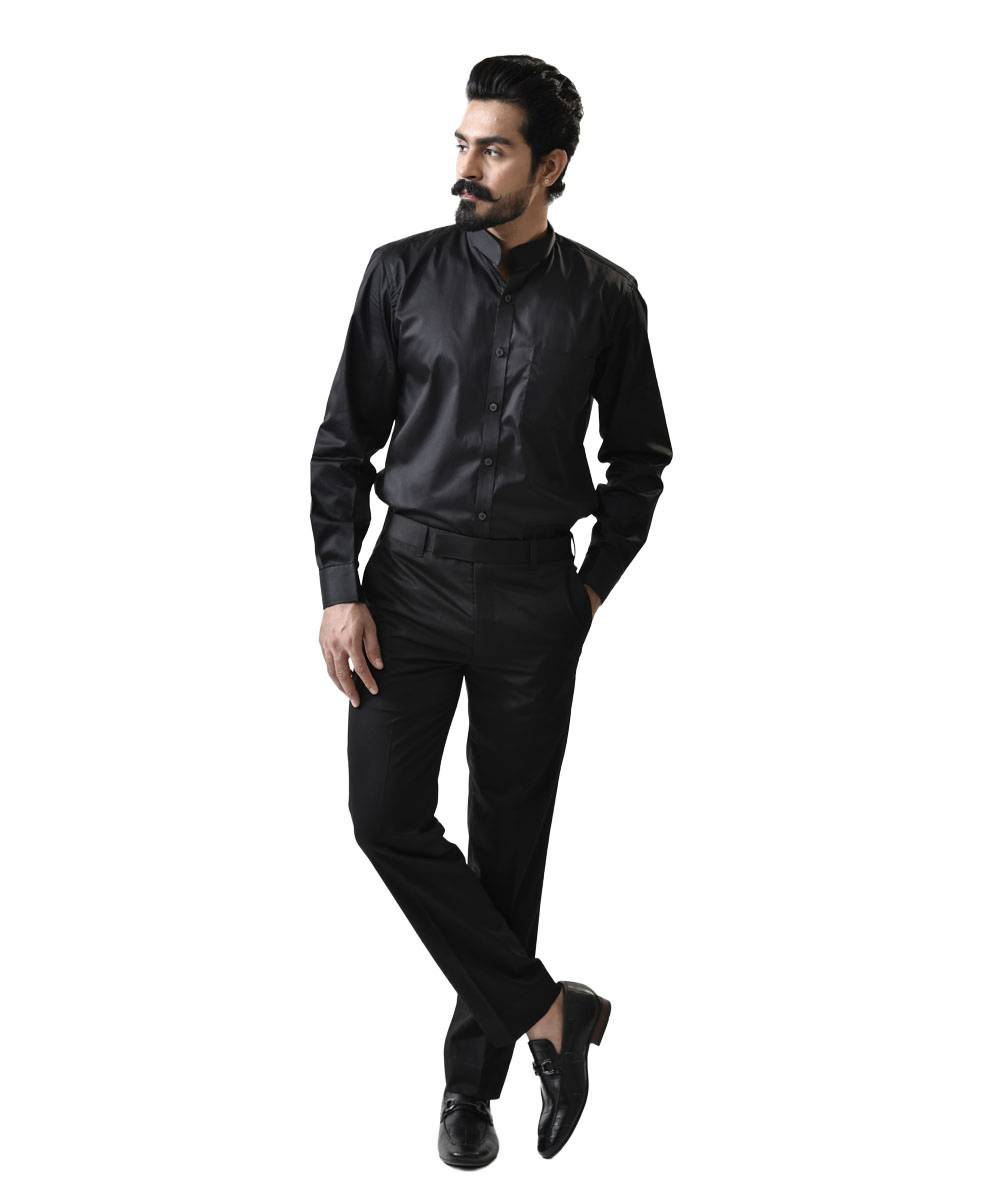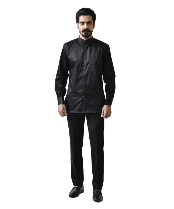 Black Mandarin Collar Shirt with Black Pant – Combo Set